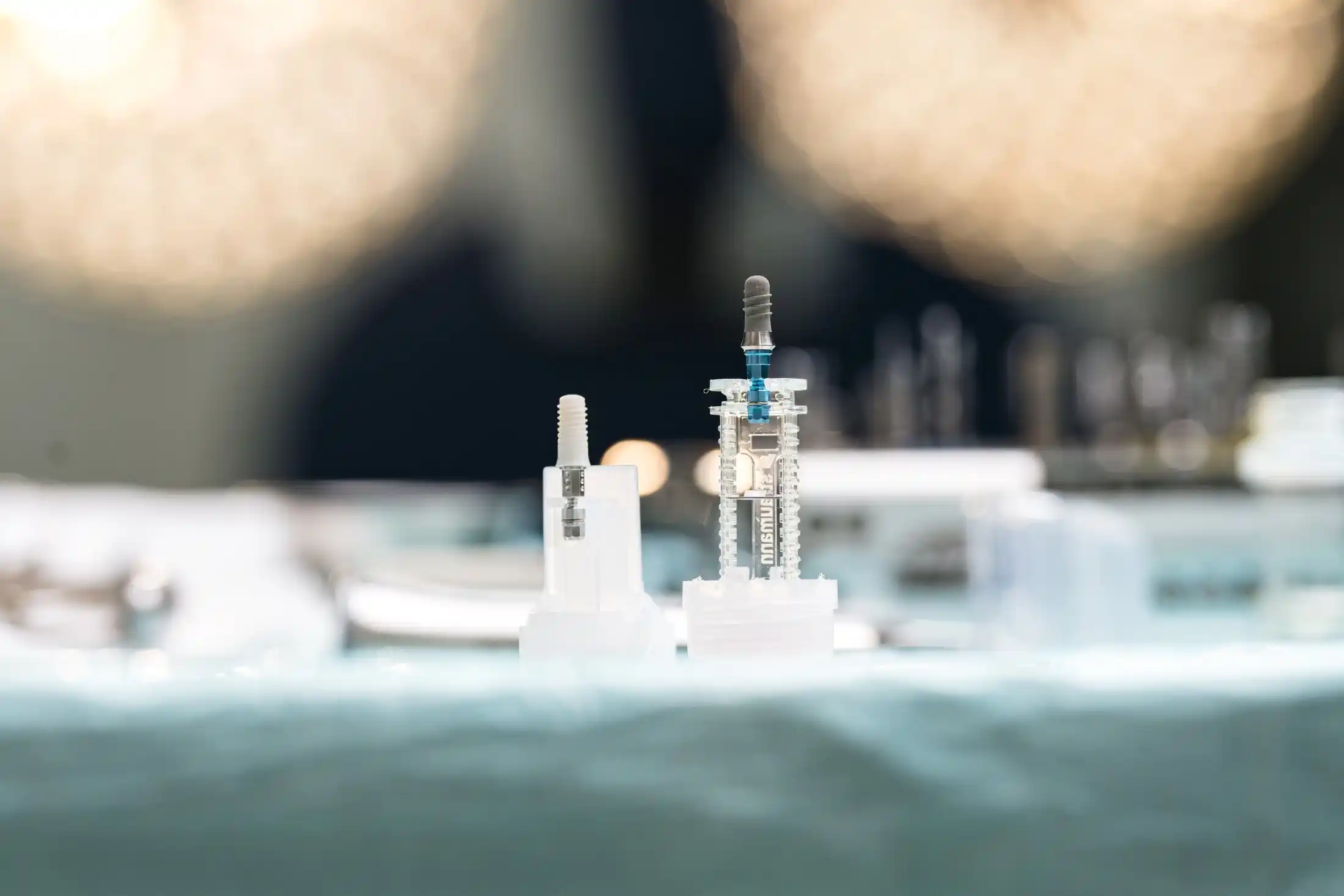 Ein Zahnimplantat ist eine künstliche Zahnwurzel aus Titan oder Zirkon, die fest im Kieferknochen verankert ist. Es ersetzt einen fehlenden Zahn und dient als stabile Basis für Zahnersatz wie Kronen, Brücken oder Prothesen, sodass ein natürliches Aussehen und eine volle Kaufunktion wiederhergestellt werden.